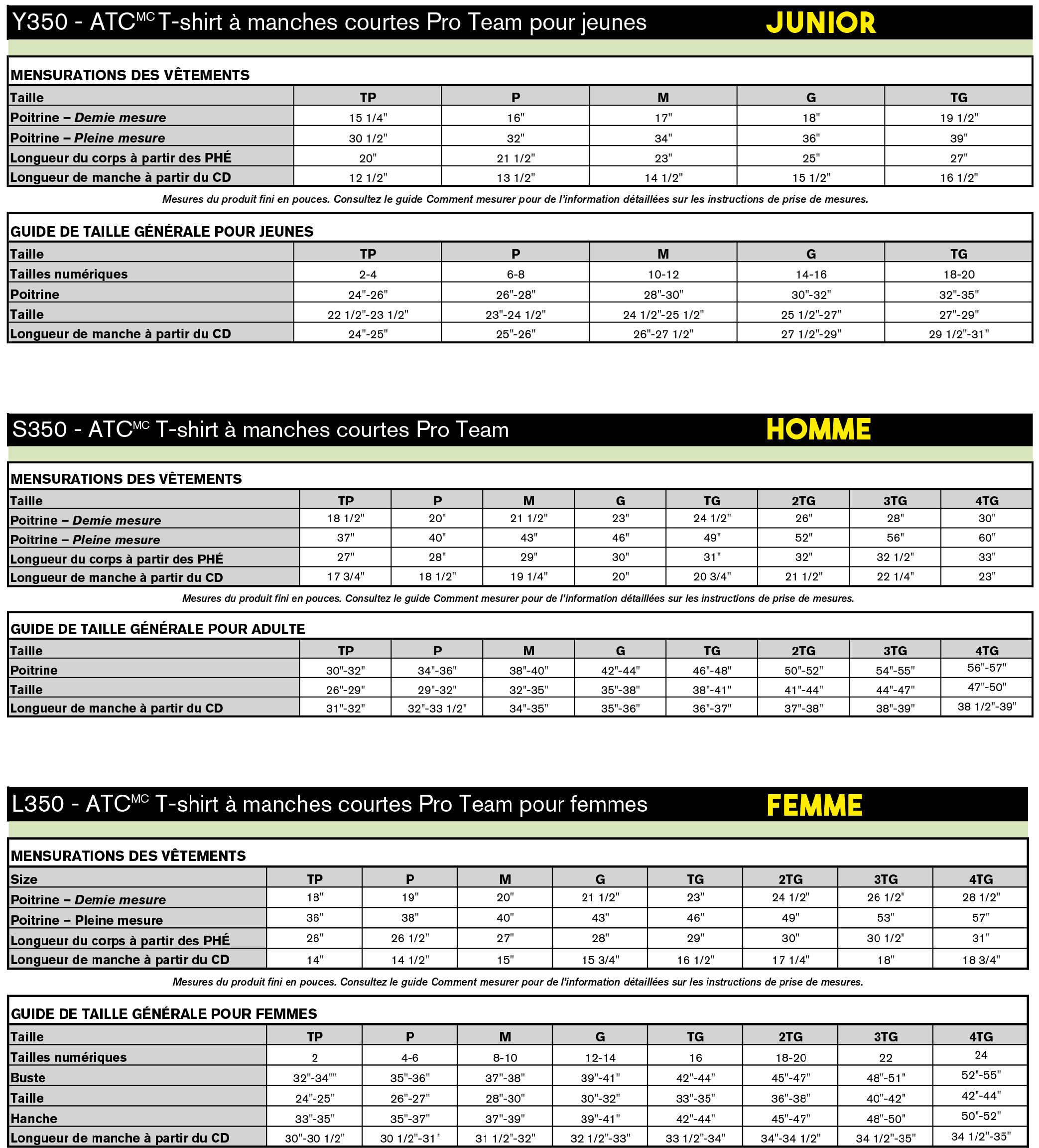 | Homme | XS, S, M, L, XL, 2XL, 3XL, 4XL |